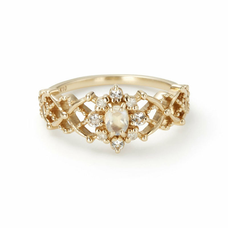 Christmas Ring With First Snow Crystal & Moonstone